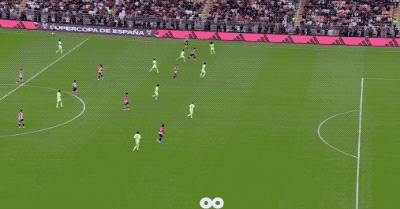 第22分钟,巴萨差点扩大领先优势,亚马尔的传球妙到毫巅,拉菲尼亚获得单刀机会,西蒙用脚后跟化解险情,亚马尔的补射,也被西蒙轻松没收。